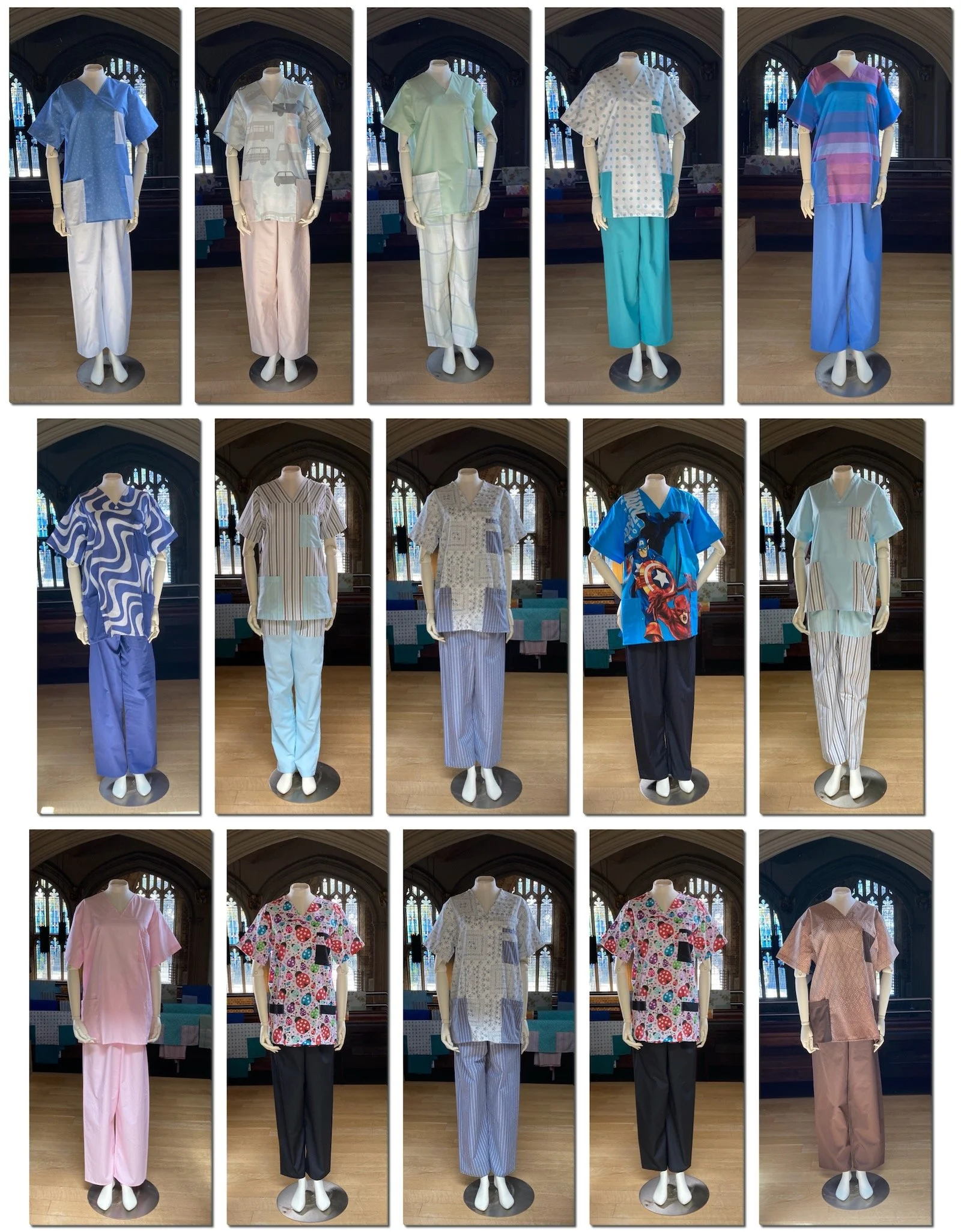 The Scrubbery began in January 2020 at the very start of the COVID-19 pandemic, when Rosie Taylor-Davies, alerted by her NHS doctor daughter’s difficulty finding well-fitting scrubs, began researching and developing a practical pattern that met clinicians’ needs. With national shortages looming, Rosie launched a volunteer sewing effort under the charitable arm of Parish Action in the Parish of Putney, cutting fabric and assembling sewing kits in St Mary’s Church Putney to meet urgent requests from local hospitals. These beginnings quickly gained momentum as more volunteers joined, driven by a shared desire to support frontline health workers with much-needed protective garments.
