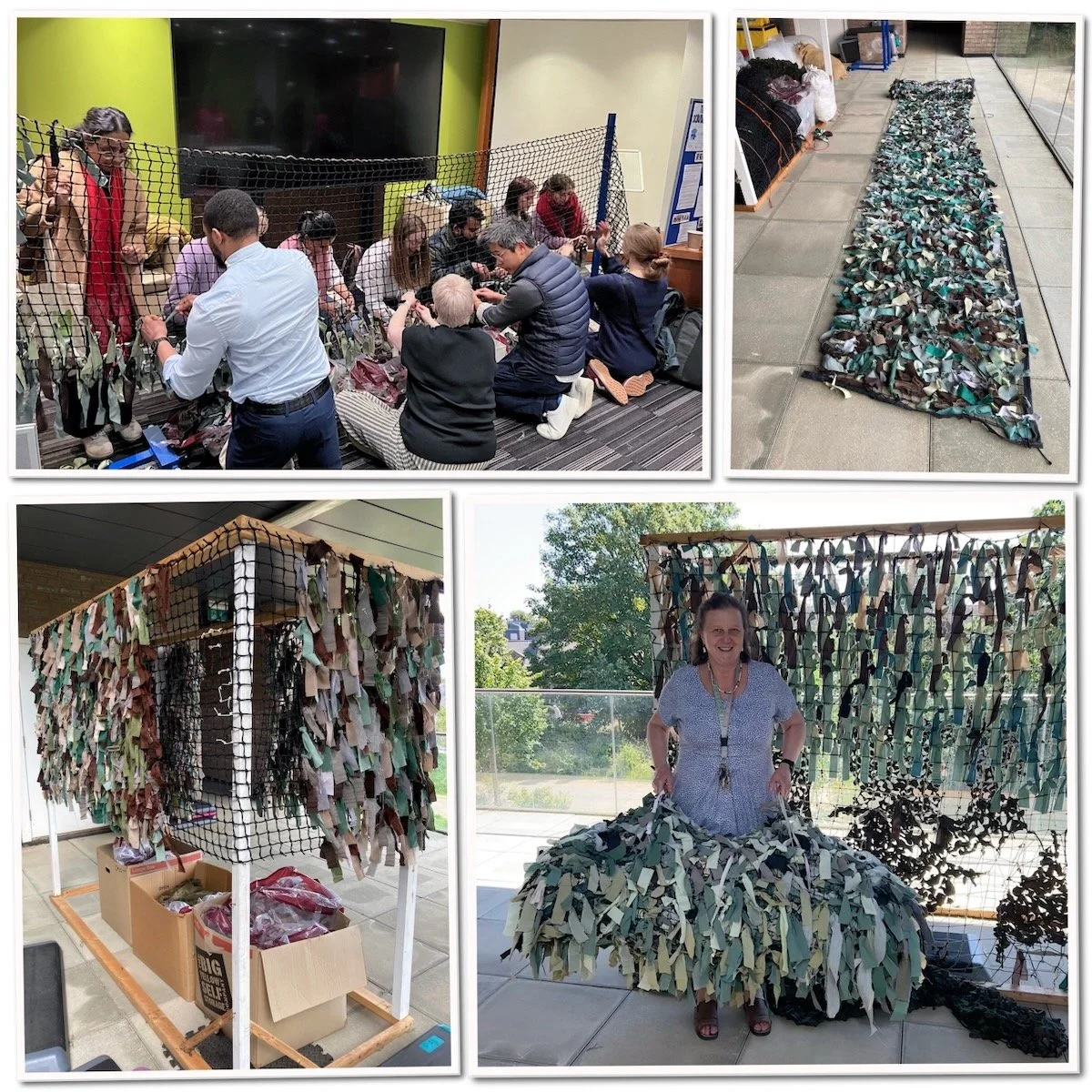 Making camouflage netting also most productively provides a great task for those who don’t sew. We have also organised a number of corporate camouflage net days for companies to participate in, which have been very successful.