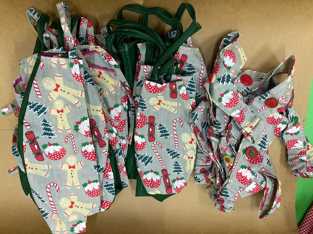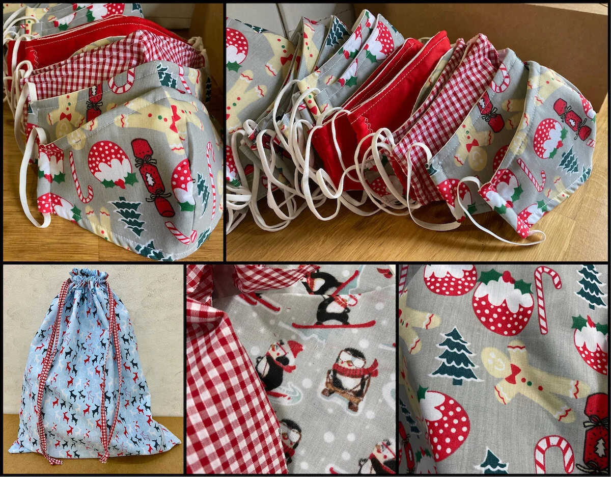We have also delivered 100 masks to Regenerate Rise, a project which reaches the isolated elderly. Three hundred masks have gone to Age UK Wandsworth, with more on the way. Age UK will include these in aid parcels they are distributing with the help of local firemen. Who wouldn't like a treat delivered by a fireman at Christmas! As well as the masks we have made 125+ Christmas drawstring bags to distribute these goodies in.