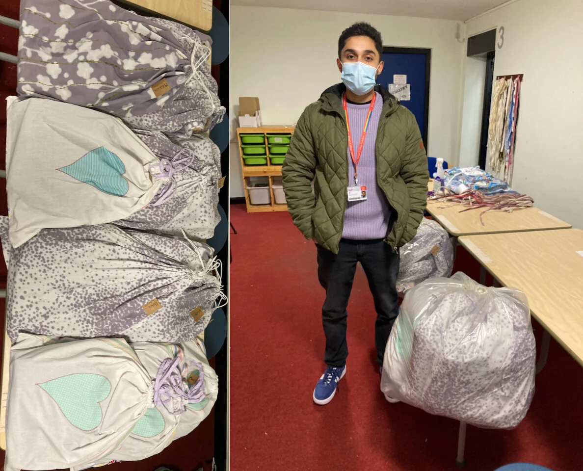 We have been doing a lot of fabric upcycling - donated pillowcases for example which we can’t use elsewhere have been converted into bags for food banks. We passed on multitudes of them and have received good feedback – they are proving very popular as they can also be reused for gym clothing/ washing bags/ shopping bags etc.