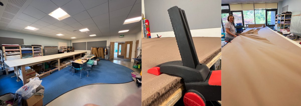 We are settling into our new home. We have been welcomed into the school and it is lovely to be part of their lives. If you want to come and work – you will need to be DBS checked and there is a process for that (see here), but that ONLY applies in term time when the children are around. During the summer holidays, 21st July to 1st September, there are no children in the school, so DBS clearance is not needed to volunteer, so do please make an appointment to come in and help. Two landlines are being installed into the sewing and cutting rooms and numbers will be circulated soon, but for now please let Rosie know directly preferably the day before so she can plan around you.
