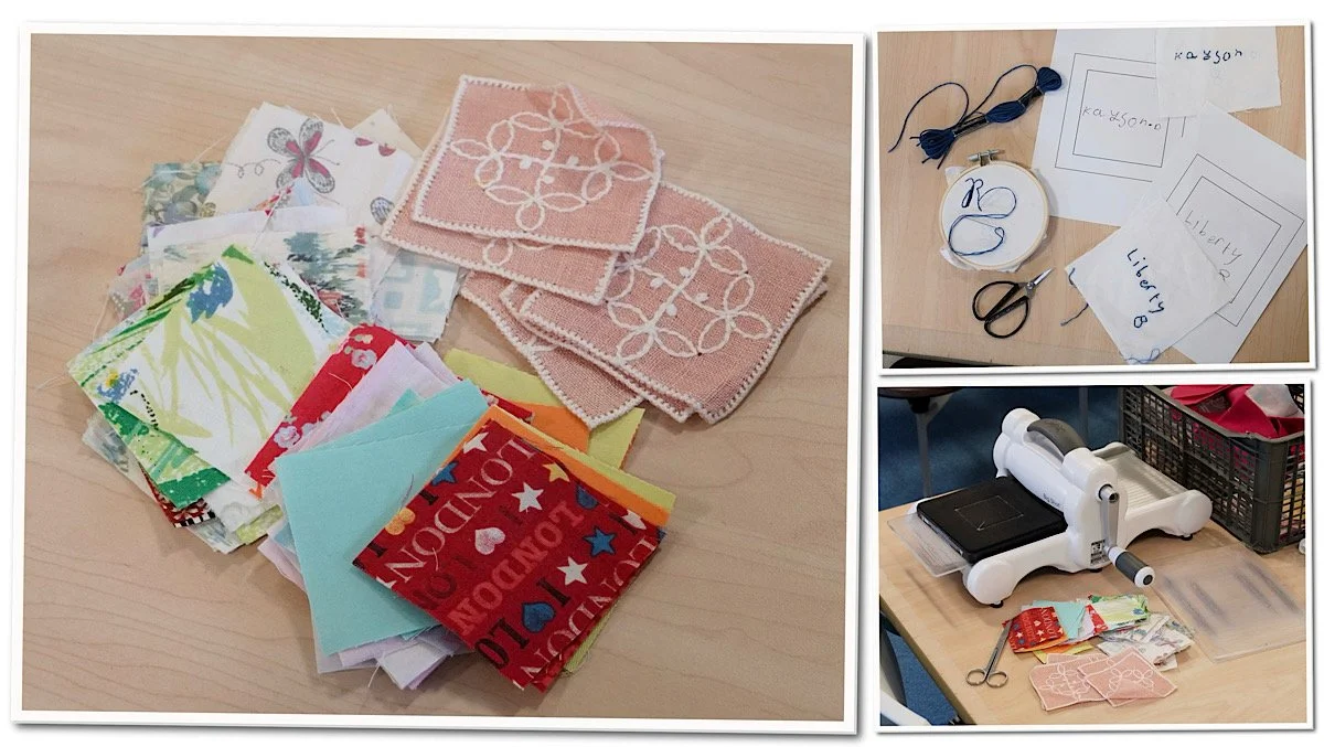 In preparation, the children have written their name on a square piece of paper which Rosie has transferred onto fabric.