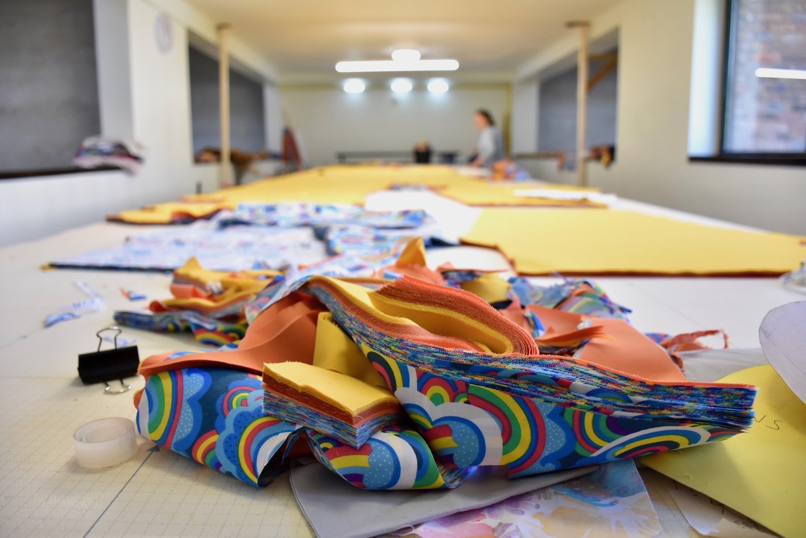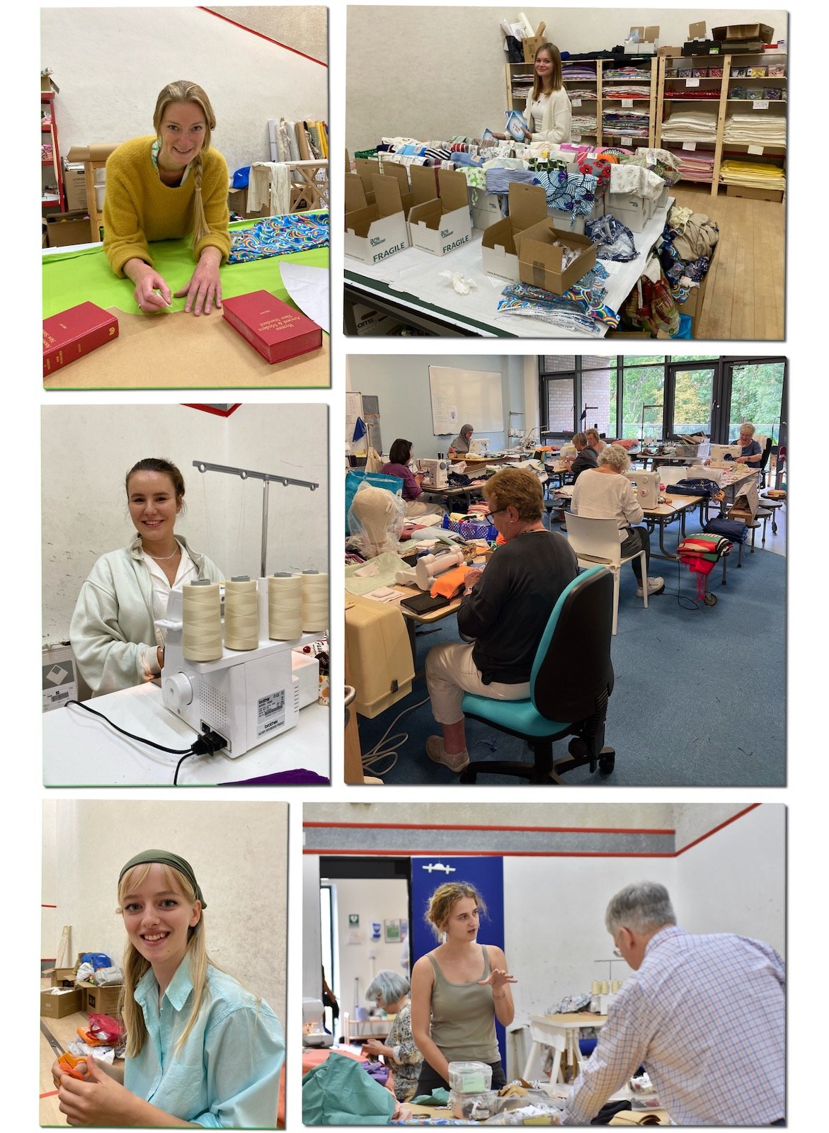 The Scrubbery Hub is based in the Oasis Academy School. It is the operational centre of our work, the place where donated fabric is received, sorted and cut into kits, garments are sewn, outwork is returned and checked, and where aid is organised for distribution. It functions as a working space, collection point and coordination base, bringing together volunteers, materials and logistics under one roof.