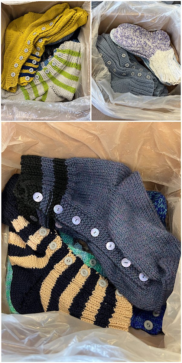 As with all of our medical garments, cast socks are made from donated or sourced materials as outwork by many people nationwide. We can stitch the buttons on in-house for those of you who would rather just knit.